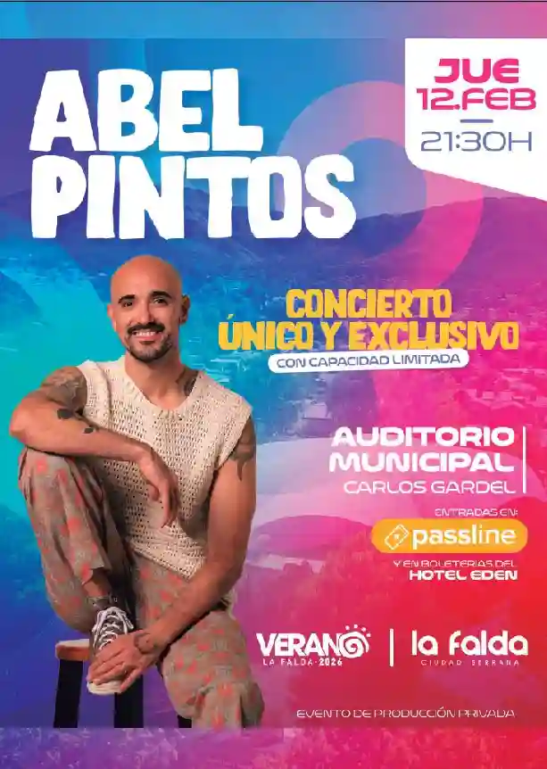 Abel Pintos en La Falda Qué hay para hacer Por Redacción FacebookTwitterWhatsApp Fecha: 12 de febrero Hora: 21:30 Lugar: Auditorio Municipal Carlos Gardel Entradas: desde 110 mil pesos Boleterías del Hotel Edén: 15% de descuento Todas las actividadesQué hay para hacerMás Todo lo que hay para hacer entresemana Qué hay para hacer Te contamos todo lo que hay para hacer entresemana... Más info Cine Francés en La Cumbre: «Paris 1900 « Qué hay para hacer Día: 17 de febrero Hora: 20:00 Lugar: Microcine Sala Caraffa (Tassano... Más info Caminata nocturna en Villa Giardino Qué hay para hacer Fecha: 12 de febrero Hora: 20:45 Lugar: Capilla Nuestra Señora de... Más info Yoga en La Cumbre Qué hay para hacer Todos los jueves de enero Hora: 19:00 Lugar: Plaza de la... Más info Yoga en La Falda Qué hay para hacer Sábado - 8:30 _Plaza San Martín Lunes - 8:00 _Centro Vecinal... Más info Visitas guiadas diurnas y nocturnas al Hotel Edén Qué hay para hacer 𝗩𝗶𝘀𝗶𝘁𝗮𝘀 𝗴𝘂𝗶𝗮𝗱𝗮𝘀 𝗱𝗶𝘂𝗿𝗻𝗮𝘀 (sin reserva previa) _Todos los días de... Más info Zumba en Capilla del Monte Qué hay para hacer Fecha: martes y jueves Hora: 19:00 Lugar: Balneario Calabalumba Actividad gratuita Más info Caminatas matutinas en Capilla del Monte Qué hay para hacer Fecha: martes y jueves Hora: 8:00 Lugar: Oficina de Turismo Actividad gratuita Más info Yoga en Capilla del Monte Qué hay para hacer Fecha: martes y jueves Hora: 10:00 Lugar: Balneario Calabalumba Actividad gratuita Más info