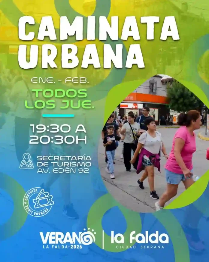 Caminatas Urbanas en La Falda Qué hay para hacer Por Redacción FacebookTwitterWhatsApp Todos los jueves Hora: 19:30 Lugar: Secretaría de Turismo – Av. Edén 92 Actividad gratuita Todas las actividadesQué hay para hacerMás Agenda Cultural: todo lo que hay para hacer Qué hay para hacer Te seguimos contando todo lo que hay para hacer... Más info Festival La Falda Encantada Qué hay para hacer Fecha: 18 de febrero Hora: 20:00 Lugar: Salón Leopoldo Marechal |Sarmiento... Más info Teatro Edén: Sexo a Gusto, con La Bicho Qué hay para hacer Fecha: 18 de febrero Hora: 23:00 Lugar: Avenida Edén 1400 – La Falda Entradas: 15... Más info Senderismo al atardecer en Capilla del Monte Qué hay para hacer Fecha: lunes y miércoles Hora: 19:00 Lugar: Oficina de Turismo Actividad gratuita Más info La Falda: noches de circo en la plaza Qué hay para hacer Fecha: lunes a viernes Hora: 20:30 Lugar: Plaza San Martín Espectáculoa a la gorra Más info «La Forma de la Música» en Los Cocos Qué hay para hacer Fecha: 18 de febrero Hora: 20:30 Lugar: Museo La Loma Entrada a la... Más info Experiencia La Cumbre Qué hay para hacer Todos los miércoles Hora: 10:00 Lugar: Caraffa 300 Actividad gratuita Más info Yoga en La Cumbre Qué hay para hacer Todos los jueves de enero Hora: 19:00 Lugar: Plaza de la... Más info Teatro Edén: Negociemos, una historia de amor Qué hay para hacer Fecha: 19 de febrero Hora: 22:00 Lugar: Avenida Edén 1400 – La Falda Entradas: 30... Más info