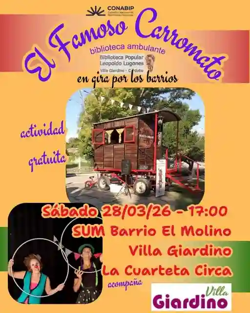 Carromato de la Lugones y Circa Cuarteta en Villa GiardinoQué hay para hacerPor Redacción FacebookTwitterWhatsApp Fecha: 28 de marzoHora: 17:00Lugar: SUM barrio el MolinoActividad gratuita: Todas las actividadesQué hay para hacerMásTodo lo que hay para hacer este finde, siempre en nuestra agenda Qué hay para hacer Arranca otro finde en la región y, como siempre,... Más infoCine en Capilla del Monte: “Proyecto Fin del Mundo” Qué hay para hacer Fecha: del 26 al 30 de marzoHora: 20:30Lugar: Cine Teatro... Más infoCaminatas en Valle Hermoso Qué hay para hacer Fechas: 12, 17, 19, 24 y 26 de marzoHora:... Más infoConcierto en Villa Giardino: Orquesta sinfónica de Punilla Qué hay para hacer Fecha: 27 de marzoHora: 19:30Lugar: Cine Teatro Alejandro GiardinoActividad... Más infoFeria de artesanos de Villa Giardino Qué hay para hacer Fecha: viernes y sábadosHora: 18:00Lugar: Plaza San Martín Más infoMuseo Ambato de La Falda Qué hay para hacer Viernes y sábados: 10:30 a 13:30 - 17:30 a... Más infoCine en La Babel: «Romería» Qué hay para hacer Fecha: 27 de marzoHora: 20:00Lugar: Galpón de la Biblioteca Popular Babel... Más infoMúsica en La Cumbre: concierto de Violoncello y Piano Qué hay para hacer Fecha: 28 de marzoHora: 21:00Lugar: Microcine Sala Caraffa -... Más infoFeria de artesanos en La Falda Qué hay para hacer Sábados y domingosHora: 10:00 a 20:00Lugar: Paseo Trenkel - Avenida Edén... Más info
