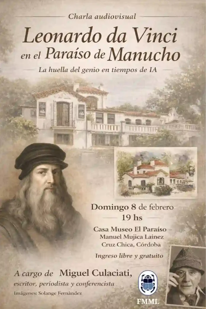 Charla audiovisual en La Cumbre: Leonardo da Vinci en el Paraíso de Manucho Qué hay para hacer Por Redacción FacebookTwitterWhatsApp Fecha: 8 de febrero Hora: 19:00 Lugar: Casa Museo El Paraíso – Manuel Mujica Lainez – Cruz Chica Actividad gratuita Todas las actividadesQué hay para hacerMás Todo lo que hay para hacer este domingo y entresemana Qué hay para hacer Te contamos todo lo que hay para hacer este... Más info Gran Peña de la Fundación de Valle Hermoso Qué hay para hacer Fecha: 8 de febrero Hora: 21:00 Lugar: Polideportivo Municipal - Av.... Más info Visitas guiadas diurnas y nocturnas al Hotel Edén Qué hay para hacer 𝗩𝗶𝘀𝗶𝘁𝗮𝘀 𝗴𝘂𝗶𝗮𝗱𝗮𝘀 𝗱𝗶𝘂𝗿𝗻𝗮𝘀 (sin reserva previa) _Todos los días de... Más info Dieciocho chelos, un mismo latido en Los Cocos Qué hay para hacer Fecha: 8 de febrero Hora: 19:40 Lugar: Club Atlético Los Cocos Actividad... Más info Bailar la plaza en La Falda Qué hay para hacer Todos los domingos Hora: 20:00 Lugar: Plaza San Martín A la gorra Más info Artistas al paso en La Falda Qué hay para hacer Sábados y domingos de enero y febrero Hora: 21:00 Lugar: Avenida... Más info La Falda bajo las Estrellas Qué hay para hacer Domingo 8 de febreroThe Dust – Tributo a QueenFM... Más info Música en vivo en Villa Giardino Qué hay para hacer Fecha: 8 de febrero Hora: 21:00 Lugar: Plaza San Martín Actividad gratuita Más info Muestra en Capilla del Monte: “La Mirada Hiperbórea” Qué hay para hacer Del 16 de enero al 3 de febrero Hora: 19:00 Lugar: Sala Poeta... Más info