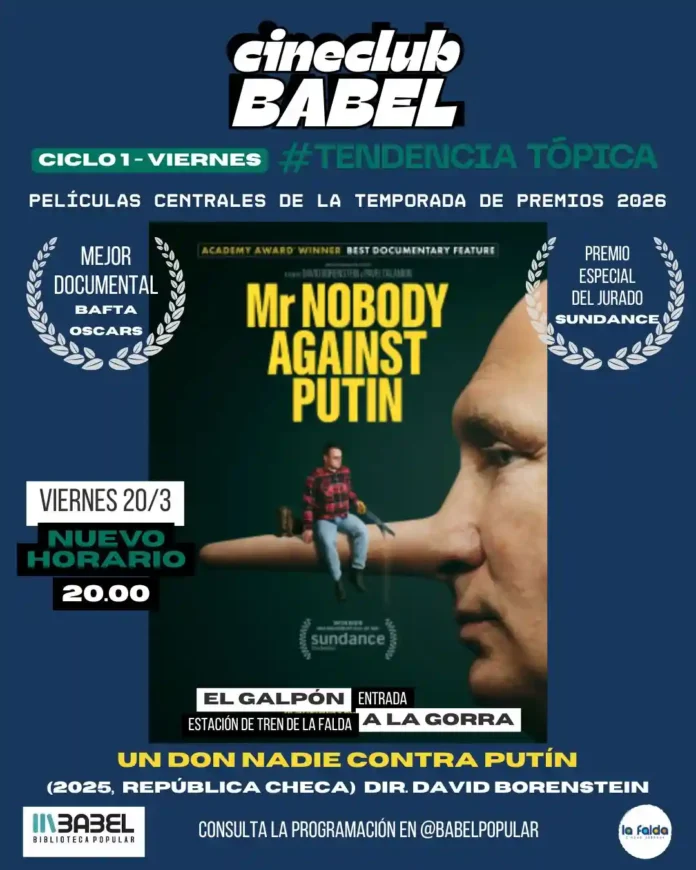Cine en La Babel: «Don nadie contra Putin»Qué hay para hacerPor Redacción FacebookTwitterWhatsApp Fecha: 20 de marzoHora: 20:00Lugar: Galpón de la Biblioteca Popular Babel – Av. España s/n (Estación de tren)Entrada: a la gorra Todas las actividadesQué hay para hacerMásTodo lo que hay para hacer entresemana Qué hay para hacer Te seguimos contando todo lo que hay para hacer... Más infoMúsica en La Cumbre: Melisa Budini y Duo Palma Sandoval Qué hay para hacer Fecha: 19 de marzoHora: 21:00Lugar: Microcine Sala Caraffa -... Más infoCaminatas en Valle Hermoso Qué hay para hacer Fechas: 12, 17, 19, 24 y 26 de marzoHora:... Más infoCine de terror en La Cumbre: «El Tema del Verano» Qué hay para hacer Fecha: 20 de marzoHora: 20:30Lugar: Microcine Sala Caraffa - Tassano 55Entrada: 5... Más infoFeria de artesanos de Villa Giardino Qué hay para hacer Fecha: Viernes y sábados de marzoHora: 18:00Lugar: Plaza San... Más infoMuseo Ambato de La Falda Qué hay para hacer Viernes y sábados: 10:30 a 13:30 - 17:30 a... Más infoCarrera de bicis infantil en La Cumbre Qué hay para hacer Fecha: 21 de marzoHora: 17:30Lugar: Plaza San MartínEntrada gratuita Más infoTeatro en Villa Giardino: «Los días casuales» Qué hay para hacer Fecha: 21 de marzoHora: 17:00Lugar: Centro de Jubilados de Villa Giardino... Más info2° Encuentro de Autores y Compositores en Villa Giardino Qué hay para hacer Fecha: 21 de marzoHora: 19:00Lugar: Plaza San MartínActividad gratuita Más info