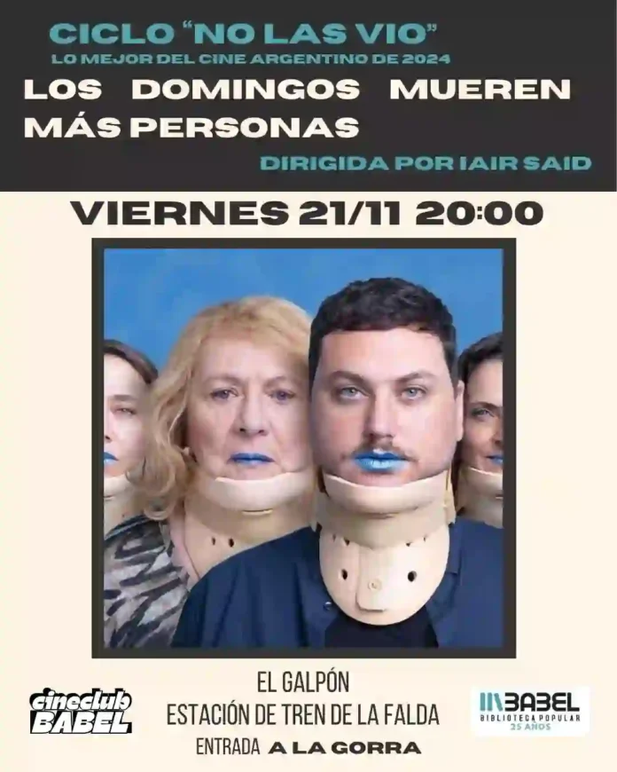 Cine en La Babel: «Los domingos mueren más personas» Qué hay para hacer Por Redacción FacebookTwitterWhatsApp Fecha: 21 de noviembre Hora: 20:00 Lugar: Galpón de la Biblioteca Popular Babel (estación de tren) – La Falda Proyección a la gorra Todas las actividadesQué hay para hacerMás Agenda de finde XL, con todo lo que hay para hacer en la región Qué hay para hacer Fiesta de la Pizza y la Cerveza Artesanal en... Más info Cine en Capilla del Monte: Nada es lo que parece Qué hay para hacer Fechas Jueves 20 - 20.30 - subtitulada. Viernes 21 y sábado... Más info Música en La Cumbre: Neo Acústica Qué hay para hacer Fecha: 21 de noviembre Hora: 21:00 Lugar: Sala Caraffa - Tassano... Más info Festival Coral Serrano en Capilla del Monte Qué hay para hacer Fechas: 21 y 22 de noviembre Hora: 19:00 Lugar: Teatro Muiño Actividad... Más info Feria de artesanos en La Falda Qué hay para hacer Fecha: 21 a 24 de noviembre Hora: 10:00 a 21:00 Lugar:... Más info Motoencuentro Capilla del Monte Qué hay para hacer Fechas: 21, 22 y 23 de noviembre Lugar: Camping Municipal... Más info Show de Magia en La Falda: «Conexiones» Qué hay para hacer Fecha: 21 de noviembre Hora: 20:30 Lugar: Salón Leopoldo Marechal -... Más info Exposición de Cecilia Bisignano en La Falda Qué hay para hacer Fecha: 21 de noviembre Hora: 19:00 Lugar: Diagonal Sud 200 Entrada gratuita Más info Feria de artesanos de Villa Giardino Qué hay para hacer Fecha: 21, 22 y 23 de noviembre Lugar: Plaza San... Más info