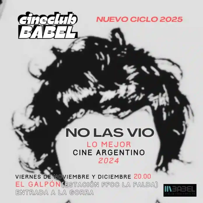 Cine en La Babel: «No las vio»Qué hay para hacerPor Redacción FacebookTwitterWhatsApp Fecha: 14 de noviembreHora: 20:00Lugar: Galpón de la Biblioteca Popular Babel (estación de tren) – La FaldaProyección a la gorra Todas las actividadesQué hay para hacerMásTodo lo que hay para hacer entresemana Qué hay para hacer Te contamos todo lo que hay para hacer entresemana... Más infoMuestra en La Cumbre: «La máquina, sueños y mentiras» Qué hay para hacer Hasta el 14 de diciembreHorarios:_De lunes a sábado... Más infoBicicleteada y caminatas en La Falda Qué hay para hacer BicicleteadaLunes y viernes - 8:30 - Secretaría de... Más infoCine Francés en La Cumbre: «En roue libre» Qué hay para hacer Día: 11 de noviembreHora: 19:00Lugar: Microcine Sala Caraffa (Tassano... Más infoCine en La Cumbre: «Mi obra maestra» Qué hay para hacer Fecha: 13, 16, 27 y 30 de noviembreHora: 19:00Lugar:... Más infoCine en Capilla del Monte: «Paw Patrol: especial navidad» Qué hay para hacer Fechas: 13, 14, 16 y 17 de noviembreHora: 19:30Lugar:... Más infoVuelta Sierras de Córdoba en La Falda y Villa Giardino Qué hay para hacer Fecha: del 14 al 16 de noviembre Más infoJazz en La Cumbre: Cielo Manouche con su Gypsy Swing Qué hay para hacer Fecha: 14 de noviembreHora: 20:00Lugar: Sala Caraffa - Tassano... Más infoCuarta edición de «Literatura en las Sierras» en Capilla del Monte Qué hay para hacer Fecha: del 14 al 16 de noviembreEntrada gratuita Más info