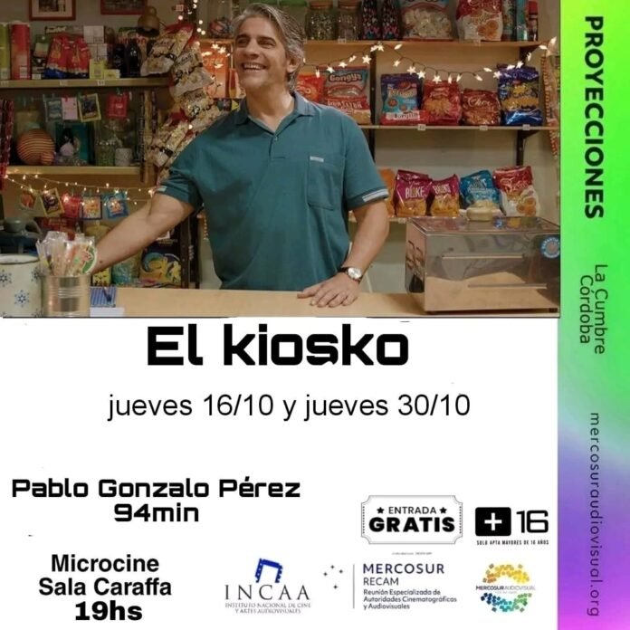 Cine en La Cumbre: «El kiosco» Qué hay para hacer Por Redacción FacebookTwitterWhatsApp Fecha: 30 de octubre Hora: 19:00 Lugar: Microcine Sala Caraffa – Tassano 55 Entrada gratuita Todas las actividadesQué hay para hacerMás Todo lo que hay para hacer entresemana Qué hay para hacer Te contamos todo lo que hay para hacer entresemana... Más info Cine en Capilla del Monte: «Teléfono negro 2» Qué hay para hacer Fechas: Jueves 23 - subtitulada del viernes 24 al lunes... Más info Muestra en La Falda: “Lo Orgánico como Lenguaje” Qué hay para hacer Día: hasta el 31 de octubre Horarios del Hotel Edén Lugar:... Más info Museos de La Cumbre Qué hay para hacer Más info Muestra de arte en Huerta Grande: «Carbocolor» de Daniel Rivero Serradell Qué hay para hacer Duración de la muestra: hasta el 1 de noviembre Horarios De... Más info Cine Francés en La Cumbre: «Quelques Jours Pas Plus» Qué hay para hacer Fecha: 28 de octubre Hora: 19:00 Lugar: Sala Caraffa - Tassano... Más info Fogón de autores en Huerta Grande Qué hay para hacer Fecha: 29 de octubre Hora: 16:00 a 19:00 Lugar: Av. San... Más info Peña por el aniversario de Capilla del Monte Qué hay para hacer Fecha: 30 de octubre 11:00 - Desfile institucional (Plaza San... Más info Gran fiesta popular por el aniversario de La Cumbre Qué hay para hacer Fecha: 30 de octubre Hora: de 10:30 Lugar: Av. Caraffa y Belgrano Actividad gratuita Más info