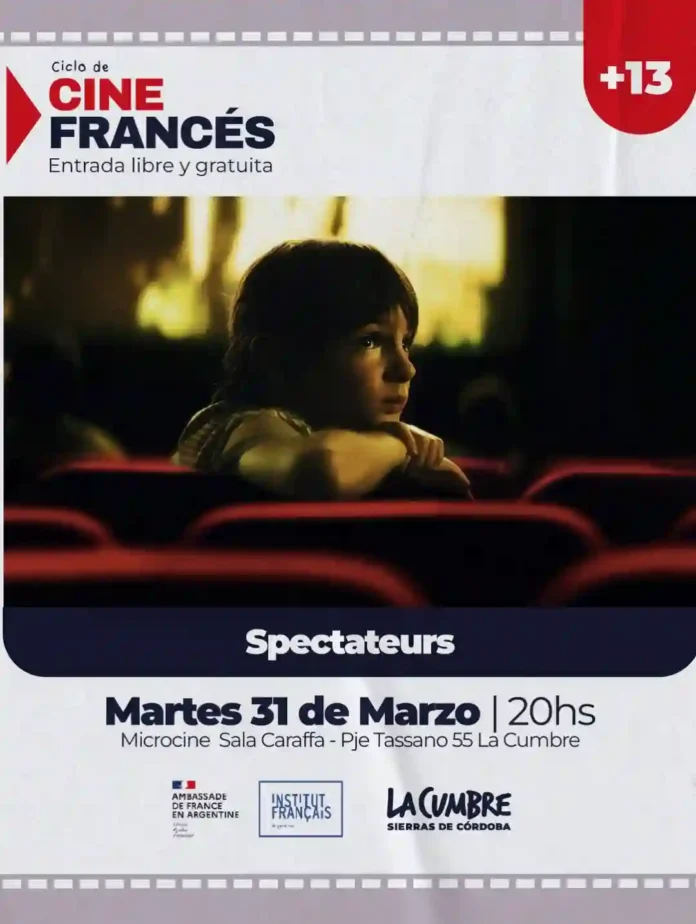 Cine Francés en La Cumbre: «Spectateurs» Qué hay para hacer Por Redacción FacebookTwitterWhatsApp Día: 31 de marzo Hora: 20:00 Lugar: Microcine Sala Caraffa (Tassano 55) Entrada gratuita Todas las actividadesQué hay para hacerMás Todo lo que hay para hacer este finde, siempre en nuestra agenda Qué hay para hacer Arranca otro finde en la región y, como siempre,... Más info Cine en Capilla del Monte: “Proyecto Fin del Mundo” Qué hay para hacer Fecha: del 26 al 30 de marzo Hora: 20:30 Lugar: Cine Teatro... Más info Cine en La Cumbre: «BU Y BU» Qué hay para hacer Fecha: 29 de marzo Hora: 20:00 Lugar: Microcine Sala Caraffa - Tassano 55 Entrada gratuita Más info Encuentro Recreativo Regional de Adultos Mayores en Valle Hermoso Qué hay para hacer Fecha: 29 de marzo Hora: 10:00 a 17:00 Lugar: Complejo Recreativo... Más info Feria de artesanos en La Falda Qué hay para hacer Sábados y domingos Hora: 10:00 a 20:00 Lugar: Paseo Trenkel - Avenida Edén... Más info Exposición “Mujeres de La Cumbre” Qué hay para hacer Fecha de inauguración: hasta el 28 de marzo Hora: 19:00 Lugar:... Más info Museo Ambato de La Falda Qué hay para hacer Viernes y sábados: 10:30 a 13:30 - 17:30 a... Más info XIII Feria del Libro en La Cumbre Qué hay para hacer Fecha: del 31 de marzo al 5 de abril Hora: 10:00... Más info Semana Santa en Huerta Grande Qué hay para hacer Fecha: del 1 al 5 de abril Actividades gratuitas Más info