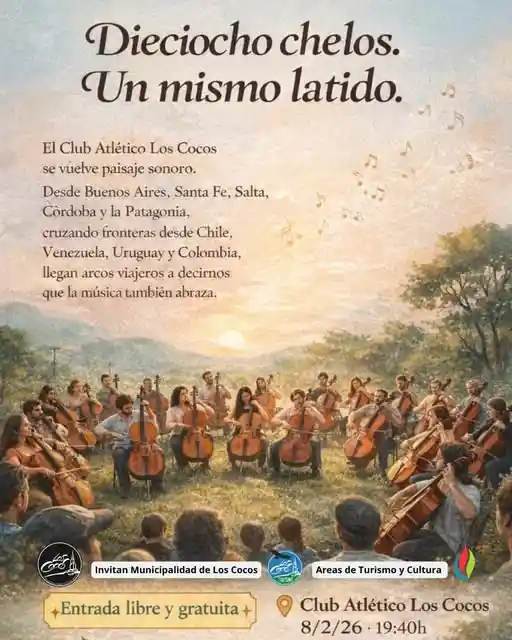Dieciocho chelos, un mismo latido en Los Cocos Qué hay para hacer Por Redacción FacebookTwitterWhatsApp Fecha: 8 de febrero Hora: 19:40 Lugar: Club Atlético Los Cocos Actividad gratuita Todas las actividadesQué hay para hacerMás Todo lo que hay para hacer este domingo y entresemana Qué hay para hacer Te contamos todo lo que hay para hacer este... Más info Gran Peña de la Fundación de Valle Hermoso Qué hay para hacer Fecha: 8 de febrero Hora: 21:00 Lugar: Polideportivo Municipal - Av.... Más info Visitas guiadas diurnas y nocturnas al Hotel Edén Qué hay para hacer 𝗩𝗶𝘀𝗶𝘁𝗮𝘀 𝗴𝘂𝗶𝗮𝗱𝗮𝘀 𝗱𝗶𝘂𝗿𝗻𝗮𝘀 (sin reserva previa) _Todos los días de... Más info Charla audiovisual en La Cumbre: Leonardo da Vinci en el Paraíso de Manucho Qué hay para hacer Fecha: 8 de febrero Hora: 19:00 Lugar: Casa Museo El Paraíso... Más info Bailar la plaza en La Falda Qué hay para hacer Todos los domingos Hora: 20:00 Lugar: Plaza San Martín A la gorra Más info Artistas al paso en La Falda Qué hay para hacer Sábados y domingos de enero y febrero Hora: 21:00 Lugar: Avenida... Más info La Falda bajo las Estrellas Qué hay para hacer Domingo 8 de febreroThe Dust – Tributo a QueenFM... Más info Música en vivo en Villa Giardino Qué hay para hacer Fecha: 8 de febrero Hora: 21:00 Lugar: Plaza San Martín Actividad gratuita Más info Muestra en Capilla del Monte: “La Mirada Hiperbórea” Qué hay para hacer Del 16 de enero al 3 de febrero Hora: 19:00 Lugar: Sala Poeta... Más info