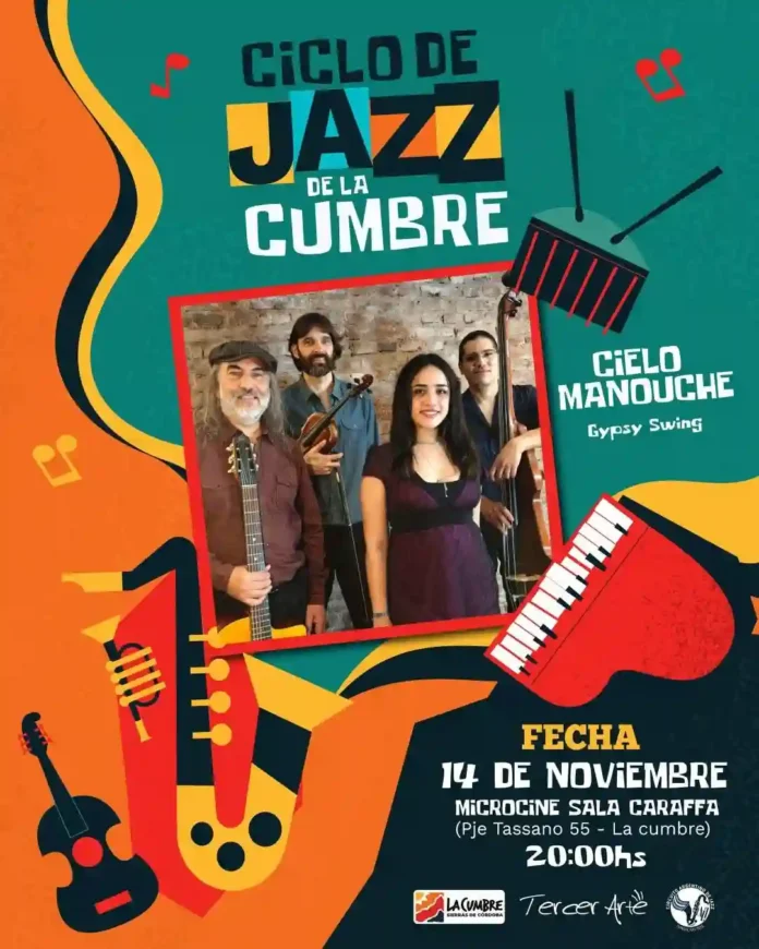 Jazz en La Cumbre: Cielo Manouche con su Gypsy SwingQué hay para hacerPor Redacción FacebookTwitterWhatsApp Fecha: 14 de noviembreHora: 20:00Lugar: Sala Caraffa – Tassano 55Entradas: 10 mil pesos – Jubilados 6 mil pesos – Hasta el jueves 6 mil pesos Todas las actividadesQué hay para hacerMásTodo lo que hay para hacer entresemana Qué hay para hacer Te contamos todo lo que hay para hacer entresemana... Más infoMuestra en La Cumbre: «La máquina, sueños y mentiras» Qué hay para hacer Hasta el 14 de diciembreHorarios:_De lunes a sábado... Más infoBicicleteada y caminatas en La Falda Qué hay para hacer BicicleteadaLunes y viernes - 8:30 - Secretaría de... Más infoCine Francés en La Cumbre: «En roue libre» Qué hay para hacer Día: 11 de noviembreHora: 19:00Lugar: Microcine Sala Caraffa (Tassano... Más infoCine en La Cumbre: «Mi obra maestra» Qué hay para hacer Fecha: 13, 16, 27 y 30 de noviembreHora: 19:00Lugar:... Más infoCine en Capilla del Monte: «Paw Patrol: especial navidad» Qué hay para hacer Fechas: 13, 14, 16 y 17 de noviembreHora: 19:30Lugar:... Más infoVuelta Sierras de Córdoba en La Falda y Villa Giardino Qué hay para hacer Fecha: del 14 al 16 de noviembre Más infoCine en La Babel: «No las vio» Qué hay para hacer Fecha: 14 de noviembreHora: 20:00Lugar: Galpón de la Biblioteca... Más infoCuarta edición de «Literatura en las Sierras» en Capilla del Monte Qué hay para hacer Fecha: del 14 al 16 de noviembreEntrada gratuita Más info