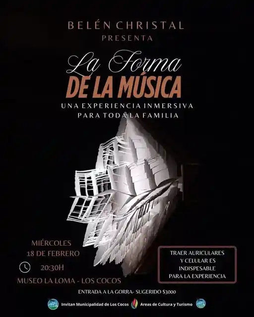 «La Forma de la Música» en Los Cocos Qué hay para hacer Por Redacción FacebookTwitterWhatsApp Fecha: 18 de febrero Hora: 20:30 Lugar: Museo La Loma Entrada a la gorra (sugerido $3.000) Todas las actividadesQué hay para hacerMás Agenda Cultural: todo lo que hay para hacer Qué hay para hacer Te seguimos contando todo lo que hay para hacer... Más info Festival La Falda Encantada Qué hay para hacer Fecha: 18 de febrero Hora: 20:00 Lugar: Salón Leopoldo Marechal |Sarmiento... Más info Teatro Edén: Sexo a Gusto, con La Bicho Qué hay para hacer Fecha: 18 de febrero Hora: 23:00 Lugar: Avenida Edén 1400 – La Falda Entradas: 15... Más info Senderismo al atardecer en Capilla del Monte Qué hay para hacer Fecha: lunes y miércoles Hora: 19:00 Lugar: Oficina de Turismo Actividad gratuita Más info La Falda: noches de circo en la plaza Qué hay para hacer Fecha: lunes a viernes Hora: 20:30 Lugar: Plaza San Martín Espectáculoa a la gorra Más info Experiencia La Cumbre Qué hay para hacer Todos los miércoles Hora: 10:00 Lugar: Caraffa 300 Actividad gratuita Más info Yoga en La Cumbre Qué hay para hacer Todos los jueves de enero Hora: 19:00 Lugar: Plaza de la... Más info Teatro Edén: Negociemos, una historia de amor Qué hay para hacer Fecha: 19 de febrero Hora: 22:00 Lugar: Avenida Edén 1400 – La Falda Entradas: 30... Más info Yoga en La Falda Qué hay para hacer Sábado - 8:30 _Plaza San Martín Lunes - 8:00 _Centro Vecinal... Más info