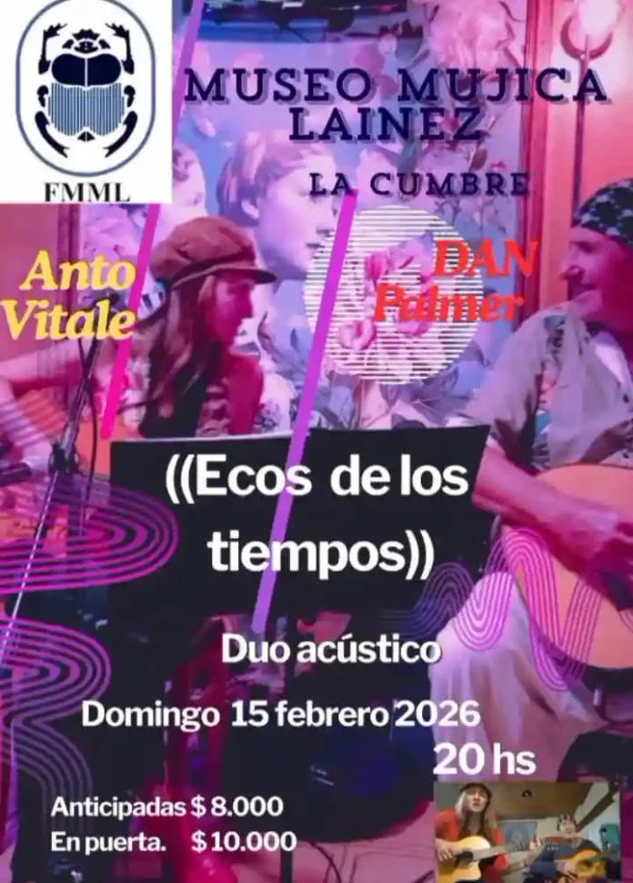 Música en el Museo Mujica Lainez: Anto Vitale & Dan Palmer Qué hay para hacer Por Redacción FacebookTwitterWhatsApp Fecha: 15 de febrero Hora: 20:00 Lugar: Museo Mujica Lainez – Cruz Chica – La Cumbre Entrada: 10 mil pesos Todas las actividadesQué hay para hacerMás Dale que el finde sigue: agenda de Carnaval Qué hay para hacer Llegó el domingo, pero el finde sigue con los... Más info Feria y música en vivo en Los Cocos Qué hay para hacer Fecha: 15 de febrero Hora: 18:00 Lugar: Playón de El Descanso Actividad... Más info Bailar la plaza en La Falda Qué hay para hacer Todos los domingos Hora: 20:00 Lugar: Plaza San Martín A la gorra Más info Artistas al paso en La Falda Qué hay para hacer Sábados y domingos de enero y febrero Hora: 21:00 Lugar: Avenida... Más info Carnaval en La Falda bajo las Estrellas: música en vivo Qué hay para hacer Fecha: 15 de febrero Hora: 21:30 Lugar: Escenario del centro -... Más info Carnaval en San Esteban Qué hay para hacer Fecha: del 13 al 16 de febrero Actividades gratuitas Más info Festival de Stand Up «Bla Bla Bla» en Villa Giardino Qué hay para hacer Fecha: 15 de febrero Hora: 20:30 Lugar: Plaza San Martín Actividad gratuita Más info Cine en Capilla del Monte: «Send Help» Qué hay para hacer Fecha: 14 y 15 de febrero Hora: 22:30 Lugar: Cine Teatro Enrique... Más info Teatro Edén: La máquina de contar cuentos Qué hay para hacer Fecha: 15 de febrero Hora: 20:00 Lugar: Avenida Edén 1400 – La Falda Entradas: 10... Más info