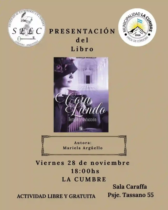 Presentación del libro «Cora Liendo», de Mariela Argüello, en La CumbreQué hay para hacerPor Redacción FacebookTwitterWhatsApp Fecha: 28 de noviembreHora: 18:00Lugar: Sala Caraffa – Tassano 55Actividad gratuita Todas las actividadesQué hay para hacerMásTodo lo que hay para hacer entresemana Qué hay para hacer Te contamos todo lo que hay para hacer entresemana... Más infoExposición de Cecilia Bisignano en La Falda Qué hay para hacer Fecha: miércoles a domingosHora: 19:00Lugar: Diagonal Sud 200Entrada gratuita Más infoCine en La Cumbre: «Mi obra maestra» Qué hay para hacer Fecha: 27 y 30 de noviembreHora: 19:00Lugar: Microcine Sala... Más infoCine en Capilla del Monte: «Zootopia 2» Qué hay para hacer Fechas: del 27 de noviembre al lunes 1 de... Más infoNoche de los Teatros en el Zamora: «Mondo Palanca» Qué hay para hacer Fecha: 28 de noviembreHora: 20:30Lugar: Espacio Zamora - Amadeo Sabattini 753 -... Más infoCine en La Babel: «El Jockey» Qué hay para hacer Fecha: 28 de noviembreHora: 20:00Lugar: Galpón de la Biblioteca... Más infoMuestra del taller de cerámica del Museo Ambato de La Falda Qué hay para hacer Fecha: 28 de noviembreHora: 17:30Lugar: Cuesta del Lago 1469Entrada... Más infoNoche de los Teatros en el Viarava: Bicho Live Set Qué hay para hacer Fecha: 28 de noviembreHora: 21:00Lugar: Espacio Viarava - Yrigoyen... Más infoTaller de sensibilización y Teatro Inclusivo en La Falda Qué hay para hacer Fecha: 28 de noviembreHora: 18:30Lugar: Salón Leopoldo Marechal -... Más info