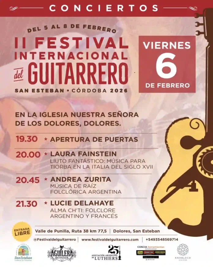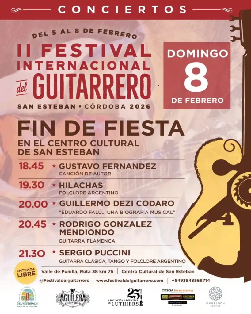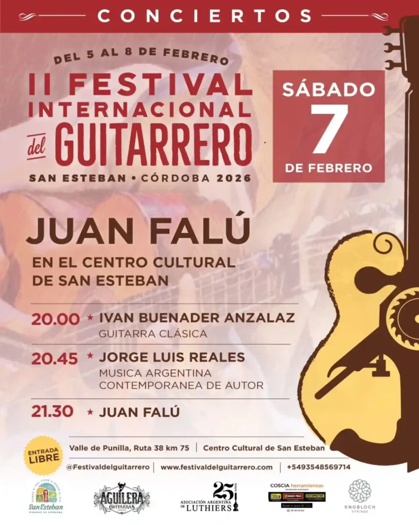 Segundo Festival del Guitarrero en San Esteban Qué hay para hacer Por Redacción FacebookTwitterWhatsApp Fecha: 6, 7 y 8 de febrero Todas las actividadesQué hay para hacerMás Agenda para todos los gustos: pegáte una vuelta Qué hay para hacer El finde arranca a pleno, con propuestas para todos... Más info Arte y música en la Semana de la Fundación de Valle Hermoso Qué hay para hacer Fecha: 5 y 6 de febrero Hora: 19:00 a 21:30 Lugar:... Más info Cine en La Babel: «La voz de Hind Rajab» Qué hay para hacer Fecha: 6 de febrero Hora: 21:00 Lugar: Galpón de la Biblioteca... Más info Teatro en La Nogalera: El acompañamiento Qué hay para hacer Fecha: 6 de febrero Hora: 21:00 Lugar: Av. San Martín 357 - Villa Giardino Entradas: $7.000 Más info La Falda bajo las Estrellas Qué hay para hacer Viernes 6 de febreroLourdes LaciarMemo BanegaNelson Oliva Sábado 7 de... Más info La Falda: noches de circo en la plaza Qué hay para hacer Fecha: lunes a viernes Hora: 20:30 Lugar: Plaza San Martín Espectáculoa a la gorra Más info Peatonal de juegos en La Falda Qué hay para hacer Fecha: 6 de febrero Hora: 21:00 Lugar: Avenida Edén del 1400 Actividad... Más info Música en La Cumbre Qué hay para hacer Fecha: 6 de febrero Hora: 21:00 Lugar: Sala Caraffa - Tassano... Más info Fiesta de la Peña Callejera en Huerta Grande Qué hay para hacer Fecha: 6 de febrero Hora: 20:45 Lugar: Av. San Martín y... Más info