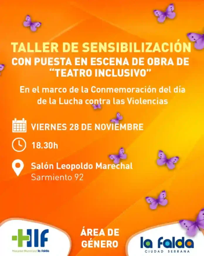 Taller de sensibilización y Teatro Inclusivo en La FaldaQué hay para hacerPor Redacción FacebookTwitterWhatsApp Fecha: 28 de noviembreHora: 18:30Lugar: Salón Leopoldo Marechal – Sarmiento 92Entrada gratuita Todas las actividadesQué hay para hacerMásTodo lo que hay para hacer entresemana Qué hay para hacer Te contamos todo lo que hay para hacer entresemana... Más infoExposición de Cecilia Bisignano en La Falda Qué hay para hacer Fecha: miércoles a domingosHora: 19:00Lugar: Diagonal Sud 200Entrada gratuita Más infoCine en La Cumbre: «Mi obra maestra» Qué hay para hacer Fecha: 27 y 30 de noviembreHora: 19:00Lugar: Microcine Sala... Más infoCine en Capilla del Monte: «Zootopia 2» Qué hay para hacer Fechas: del 27 de noviembre al lunes 1 de... Más infoNoche de los Teatros en el Zamora: «Mondo Palanca» Qué hay para hacer Fecha: 28 de noviembreHora: 20:30Lugar: Espacio Zamora - Amadeo Sabattini 753 -... Más infoCine en La Babel: «El Jockey» Qué hay para hacer Fecha: 28 de noviembreHora: 20:00Lugar: Galpón de la Biblioteca... Más infoMuestra del taller de cerámica del Museo Ambato de La Falda Qué hay para hacer Fecha: 28 de noviembreHora: 17:30Lugar: Cuesta del Lago 1469Entrada... Más infoNoche de los Teatros en el Viarava: Bicho Live Set Qué hay para hacer Fecha: 28 de noviembreHora: 21:00Lugar: Espacio Viarava - Yrigoyen... Más infoPresentación del libro «Cora Liendo», de Mariela Argüello, en La Cumbre Qué hay para hacer Fecha: 28 de noviembreHora: 18:00Lugar: Sala Caraffa - Tassano... Más info