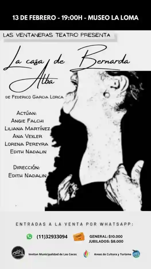 Teatro en Los Cocos: La Casa de Bernarda AlbaQué hay para hacerPor Redacción FacebookTwitterWhatsApp Fecha: 13 de febreroHora: 19:00Lugar: Museo La LomaEntradas: 10 mil pesos – Jubilados 8 mil pesos Todas las actividadesQué hay para hacerMásTodo lo que hay para hacer entresemana Qué hay para hacer Te contamos todo lo que hay para hacer entresemana... Más infoCaminata nocturna en Villa Giardino Qué hay para hacer Fecha: 12 de febreroHora: 20:45Lugar: Capilla Nuestra Señora de... Más infoYoga en La Cumbre Qué hay para hacer Todos los jueves de eneroHora: 19:00Lugar: Plaza de la... Más infoYoga en La Falda Qué hay para hacer Sábado - 8:30_Plaza San MartínLunes - 8:00_Centro Vecinal... Más infoVisitas guiadas diurnas y nocturnas al Hotel Edén Qué hay para hacer 𝗩𝗶𝘀𝗶𝘁𝗮𝘀 𝗴𝘂𝗶𝗮𝗱𝗮𝘀 𝗱𝗶𝘂𝗿𝗻𝗮𝘀 (sin reserva previa)_Todos los días de... Más infoZumba en Capilla del Monte Qué hay para hacer Fecha: martes y juevesHora: 19:00Lugar: Balneario CalabalumbaActividad gratuita Más infoCaminatas matutinas en Capilla del Monte Qué hay para hacer Fecha: martes y juevesHora: 8:00Lugar: Oficina de TurismoActividad gratuita Más infoYoga en Capilla del Monte Qué hay para hacer Fecha: martes y juevesHora: 10:00Lugar: Balneario CalabalumbaActividad gratuita Más infoAbel Pintos en La Falda Qué hay para hacer Fecha: 12 de febreroHora: 21:30Lugar: Auditorio Municipal Carlos GardelEntradas:... Más info