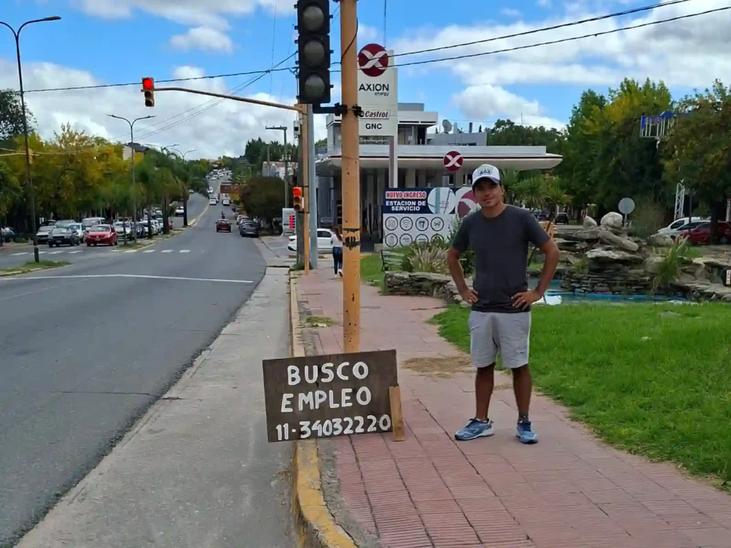 Alan Robles se mudó desde Buenos Aires a Santa María de Punilla junto a su esposa y sus dos hijos hace casi tres meses y está en busca de trabajo. Tras repartir currículums sin suerte, hace dos semanas decidió pararse en los semáforos de la Ruta 38 con un cartel: “Busco empleo”.