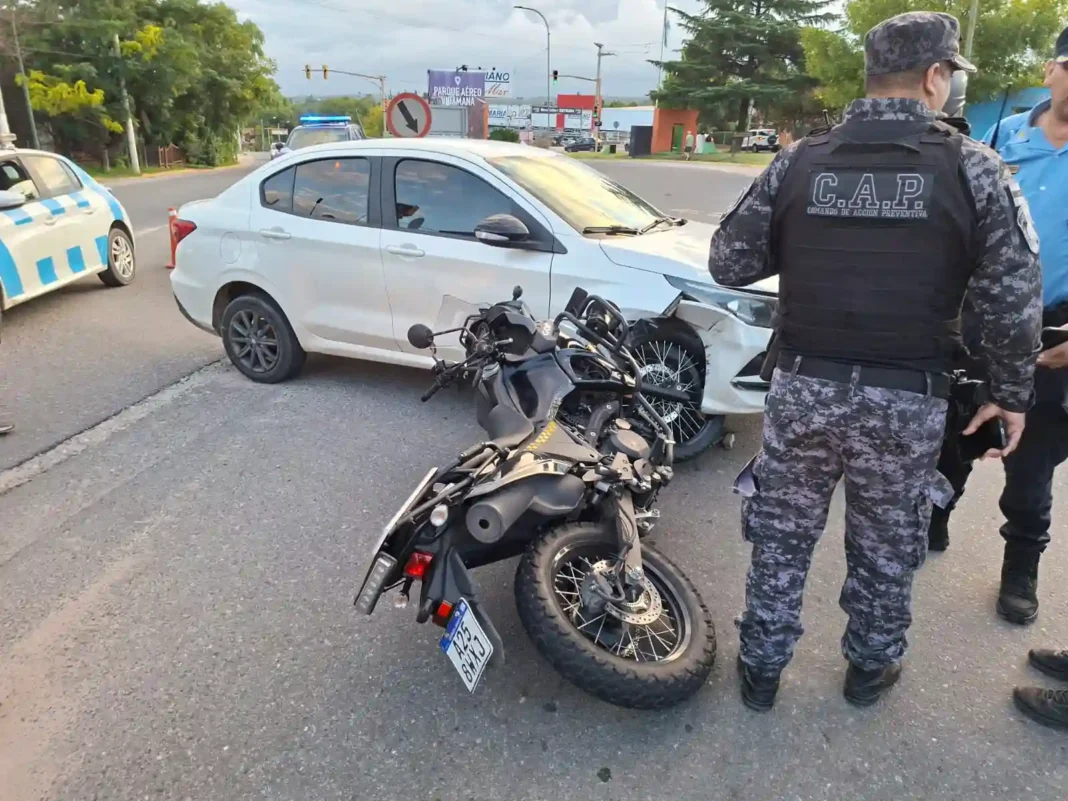 Un efectivo del Grupo de Operaciones Preventivas (GOP), de la Policía Caminera, resultó herido este viernes por la tarde tras chocar en su moto contra un auto en el acceso sur de La Falda en medio de una persecución.