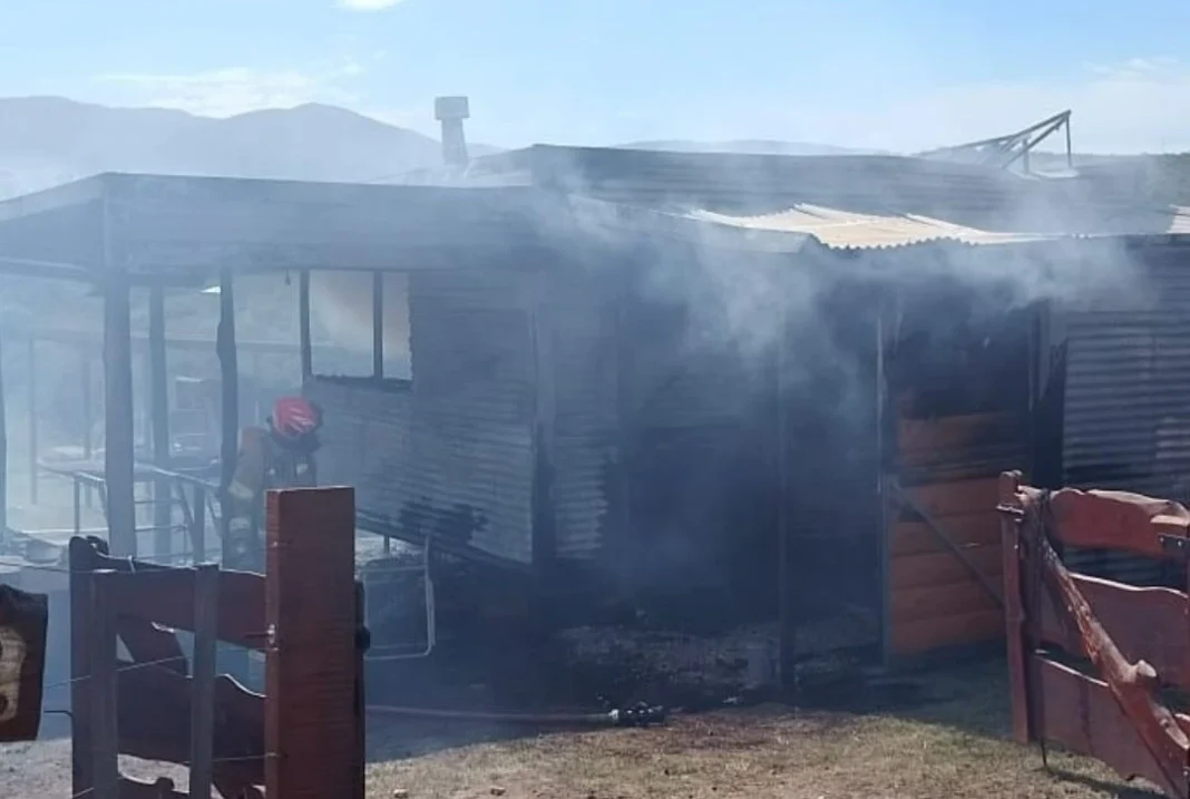 Según informó la Guardia Local, el fuego se inició en un galpón de chapa lindero a la vivienda, donde se realizaban trabajos de soldadura, producto un cortocircuito en un compresor.