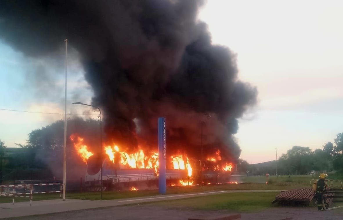 Tras evacuar a los pasajeros, personal Trenes Argentinos intentó apagar el fuego con extintores y luego intervinieron los bomberos, que tampoco pudieron detener el avance de las llamas.