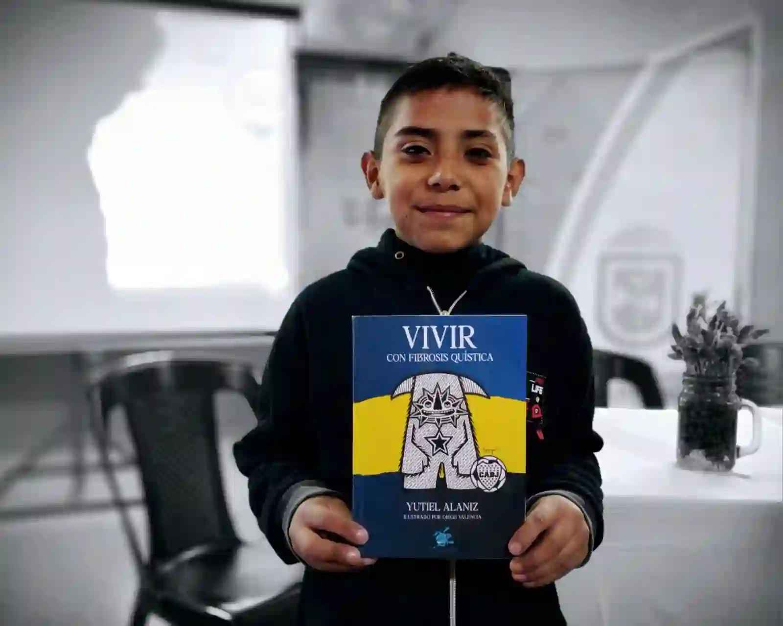 El faldense de 9 años Yutiel Alaniz presentó este sábado su libro “Vivir con fibrosis quística”. Allí, el pequeño escritor relata con simpleza, y en código futbolero, su experiencia de vida con la enfermedad y las dificultades de su tratamiento.