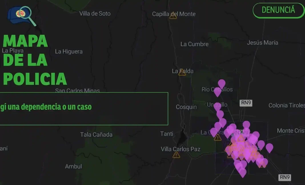 En el mapa figura el crimen de Jonatan Romo, ocurrido en la comisaría de La Falda el 10 de julio de 2022, y por el cual hay cinco efectivos de la Policía de Córdoba imputados (ver nota).